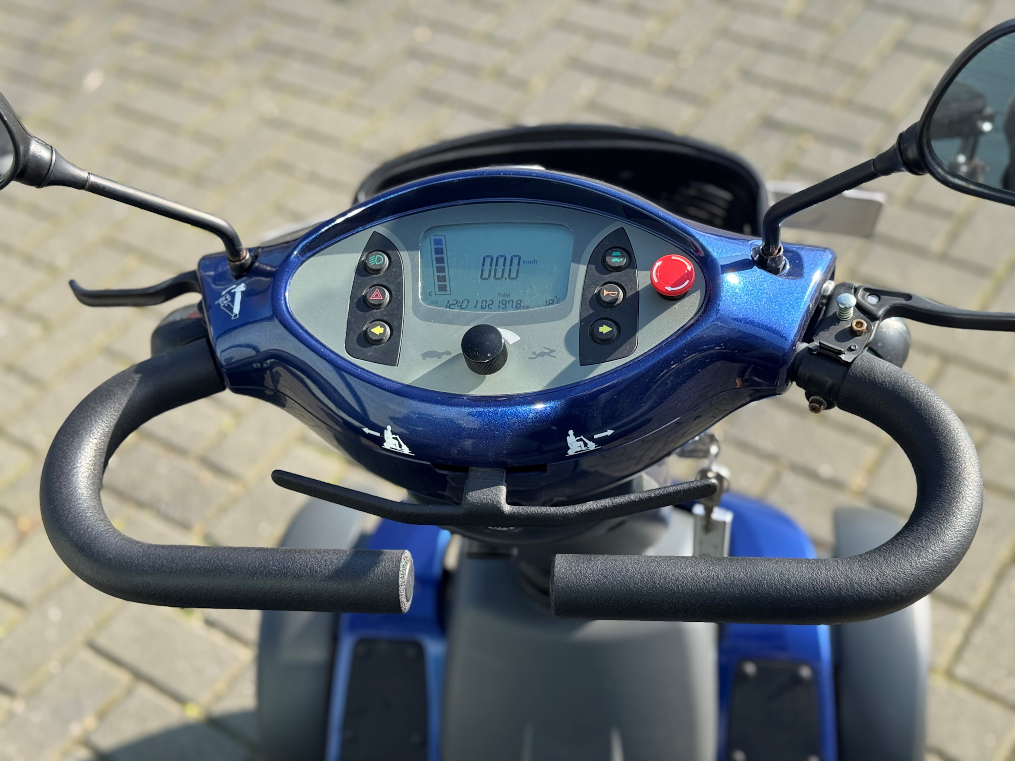 Vanaf batch 5449 is de Excel Galaxy II 4-wiel niet alleen voorzien van een digitaal dashboard, maar ook van een noodstopknop. De noodstopknop is parallel geschakeld aan de potmeters en verbonden aan het PC board. Wanneer men de noodstopknop indrukt, dan zal de scootmobiel direct afremmen en tot stilstand komen. Om de noodstopknop te resetten, kan deze eenvoudig naar rechts gedraaid worden en klikt dan terug in de noodstopmodus. De scootmobiel kan hierna weer gebruikt worden zonder dat het contact uit/aan gezet dient te worden.