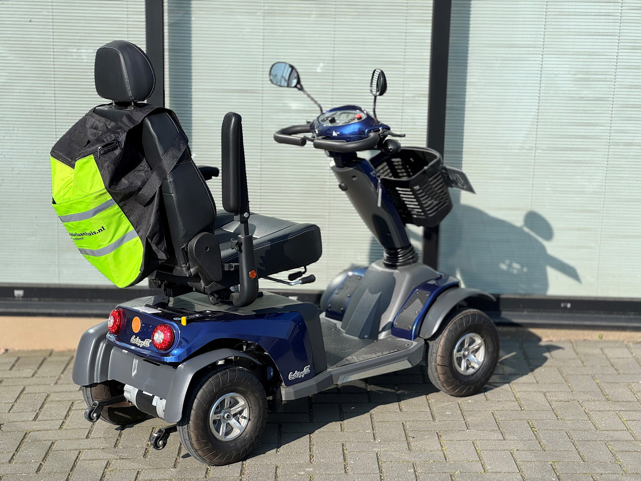 De Excel Galaxy II 4 is een 15 km/u maxi-size scooter en voorzien van alle kwaliteiten; een zeer comfortabele zitting met verstelbare rugleuning die naar individuele wens ingesteld kan worden, instelbare voor- en achtervering, een gebruiksvriendelijk en overzichtelijk dashboard met tip-touch bediening*, telescopische schokdempers in de voorvork, de optie om links/rechts bedienbaar te zijn en een afneembare mand aan de voorzijde. Door zijn lange wielbasis, ontstaat er extra voetruimte. Dit maakt de Galaxy II de ideale scooter voor lange mensen. De relatief grote actieradius en het energiezuinig gebruik maken deze scooter tot uw uitstekende partner voor het maken van uitstapjes!