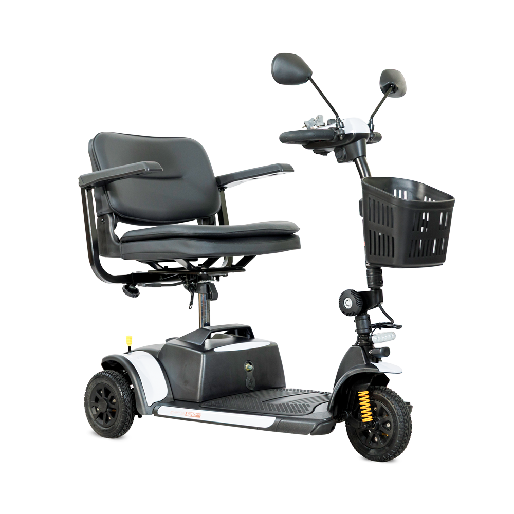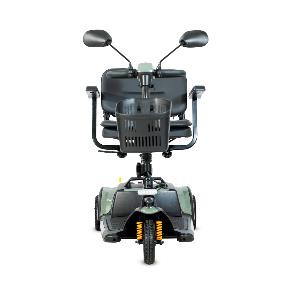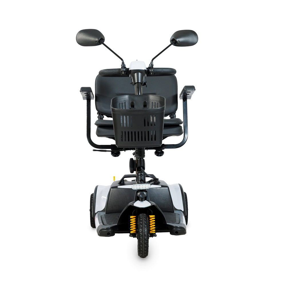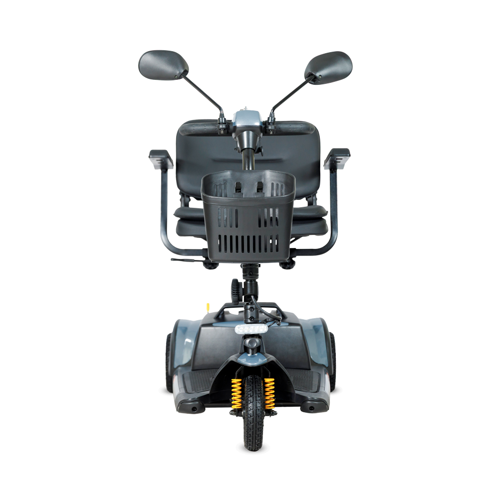 De actieradius bedraagt tot 22 km, ruim voldoende voor dagelijkse ritten. De stoel is draaibaar en afneembaar, de rugleuning is neerklapbaar en de armleuningen zijn in breedte verstelbaar. Ook de stuurkolom is verstelbaar, zodat u altijd een prettige rijhouding kunt instellen.
