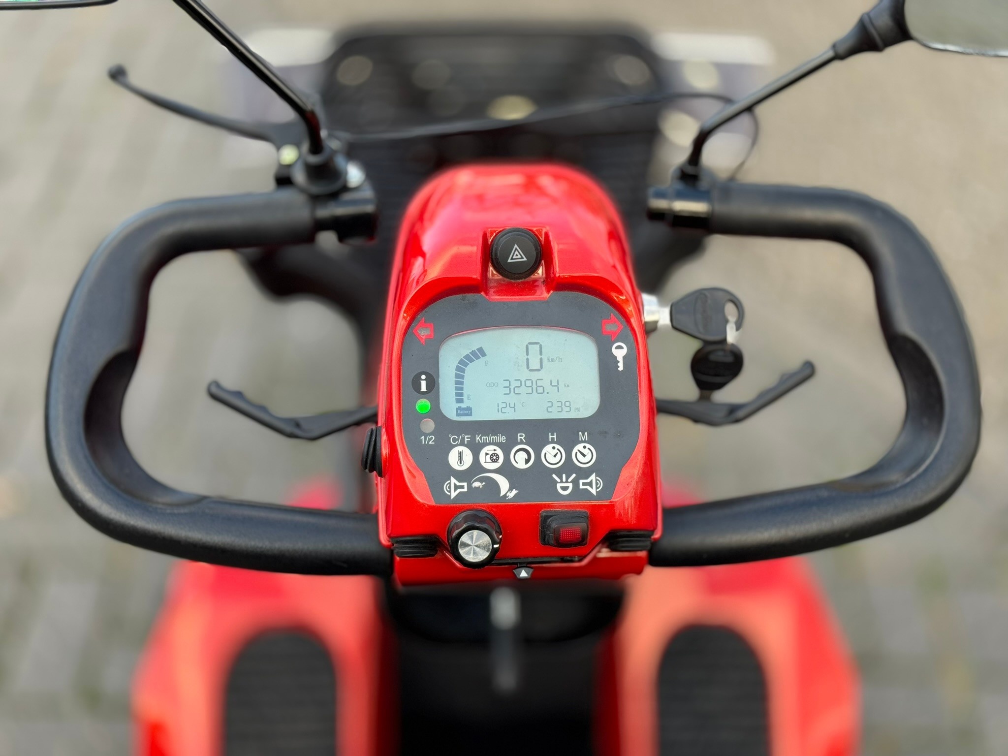 De bestverkochte scootmobielen van Mango Mobility zijn tegenwoordig uitgerust met een stopknop! Zo ook de FR-1. Mocht je om welke reden dan ook de controle over de scootmobiel verliezen, dan kan je gebruik maken van de stopknop, bovenop het dashbord, waardoor je gelijk stil komt te staan.