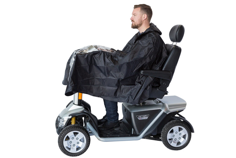 U wilt natuurlijk niet doorweekt raken als u door de regen moet op uw scootmobiel. En de meeste poncho's zijn ontworpen om u staand te bedekken. Gebruik daarom deze regencape voor op uw scootmobiel.