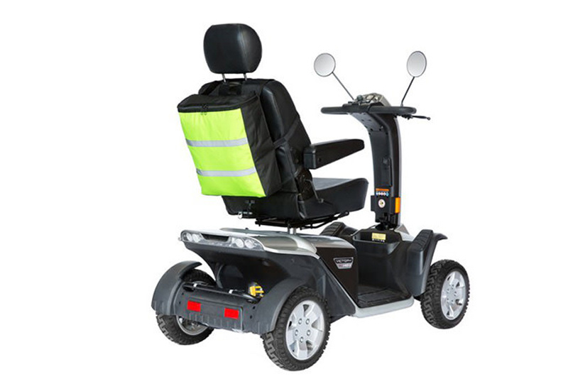 Het kan snel gevaarlijk worden om in het donker op pad te gaan. Soms zijn scootmobielen namelijk moeilijk te zien voor andere weggebruikers. Dankzij deze grote tas met reflecterende banden aan de achterzijde, hoeft u zich daar geen zorgen om te maken. De rest van de tas is ook gemaakt van fluorescerend geel nylon. Hiermee bent u 's nachts niet te missen en kunt u veilig het huis uit na zonsondergang.